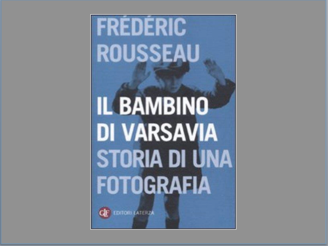 Per un giorno così importante, riprendiamo un libro incontrato già due volte, nel 2019 e 2020, per ragioni storiche. Si tratta di: “Il bambino di Varsavia, storia di una fotografia”, di Frédéric Rousseau (Edizioni Laterza). Nel volume si parla del Ghetto di quella città, circoscritto da un muro il 16 novembre 1940. Da lì gli ebrei (380mila) sarebbero stati deportati il 22 luglio 1942. Sappiamo come un gerarca nazista (Jürgen Stroop, generale delle SS) volesse documentare fotograficamente lo sgombero del Ghetto, in un album “di pregio” da consegnare a Hitler, dove avrebbe trovato posto l’immagine riportata in copertina del libro di Rousseau: quella del bambino, appunto. Ed è proprio quella fotografia che deve farci riflettere, nel giorno della memoria e anche in altri ambiti.