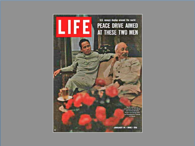 Ho Chi Minh assieme al suo braccio destro Pham Van Dong. Ph. Romano Cagnoni, copertina di LIFE del 14 gennaio 1966.