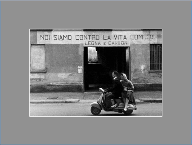 Cose d’altri tempi, che vanno ad appannare un’idea vincente: diventata icona dei tempi e del costume. La Vespa è esposta in molti musei del mondo; come dicevamo, anche al MoMa di New York. Tanti fidanzati l’hanno cavalcata, con la donna seduta di lato, come su una panchina; e il ricordo può riaccendersi nei tanti film nei quali lo scooter è stato protagonista.