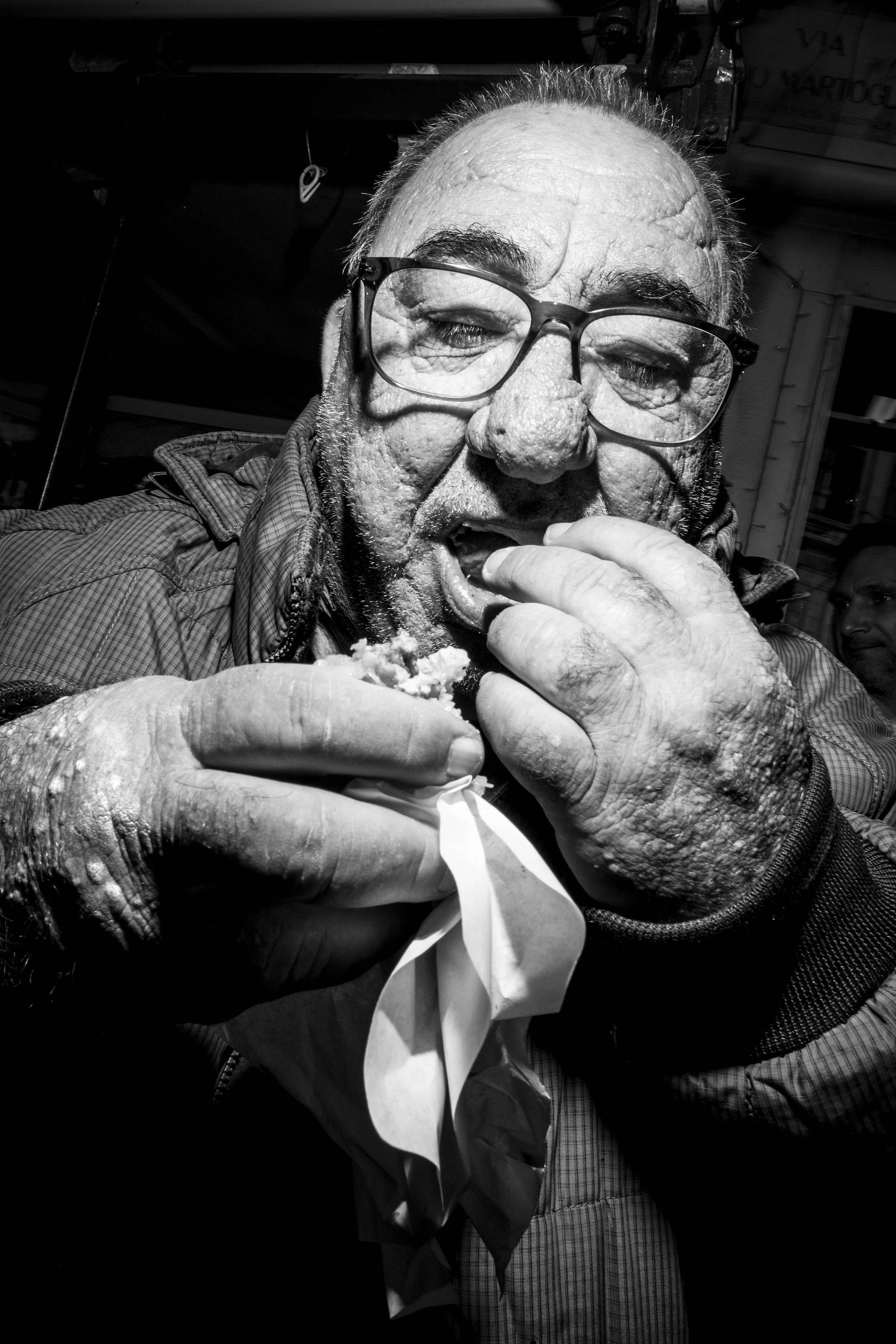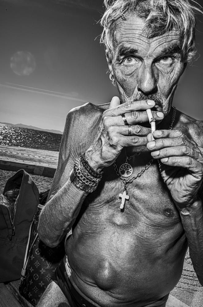 Armato di una macchina fotografica e di un flash potente, Bruce Gilden si avvicina ai soggetti fino a invadere il loro spazio personale. I suoi ritratti sono ravvicinati, crudi, talvolta spietati. Rughe, sguardi duri, imperfezioni: nulla viene addolcito o nascosto. Le strade di New York, così come quelle di Haiti, Tokyo o Parigi, diventano il suo teatro naturale, popolato da personaggi che raramente trovano spazio in una rappresentazione patinata della realtà.